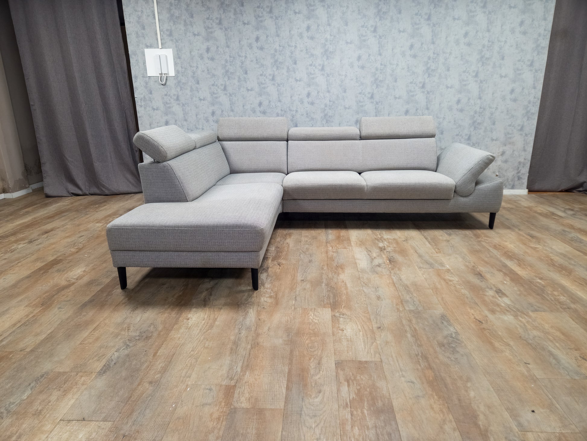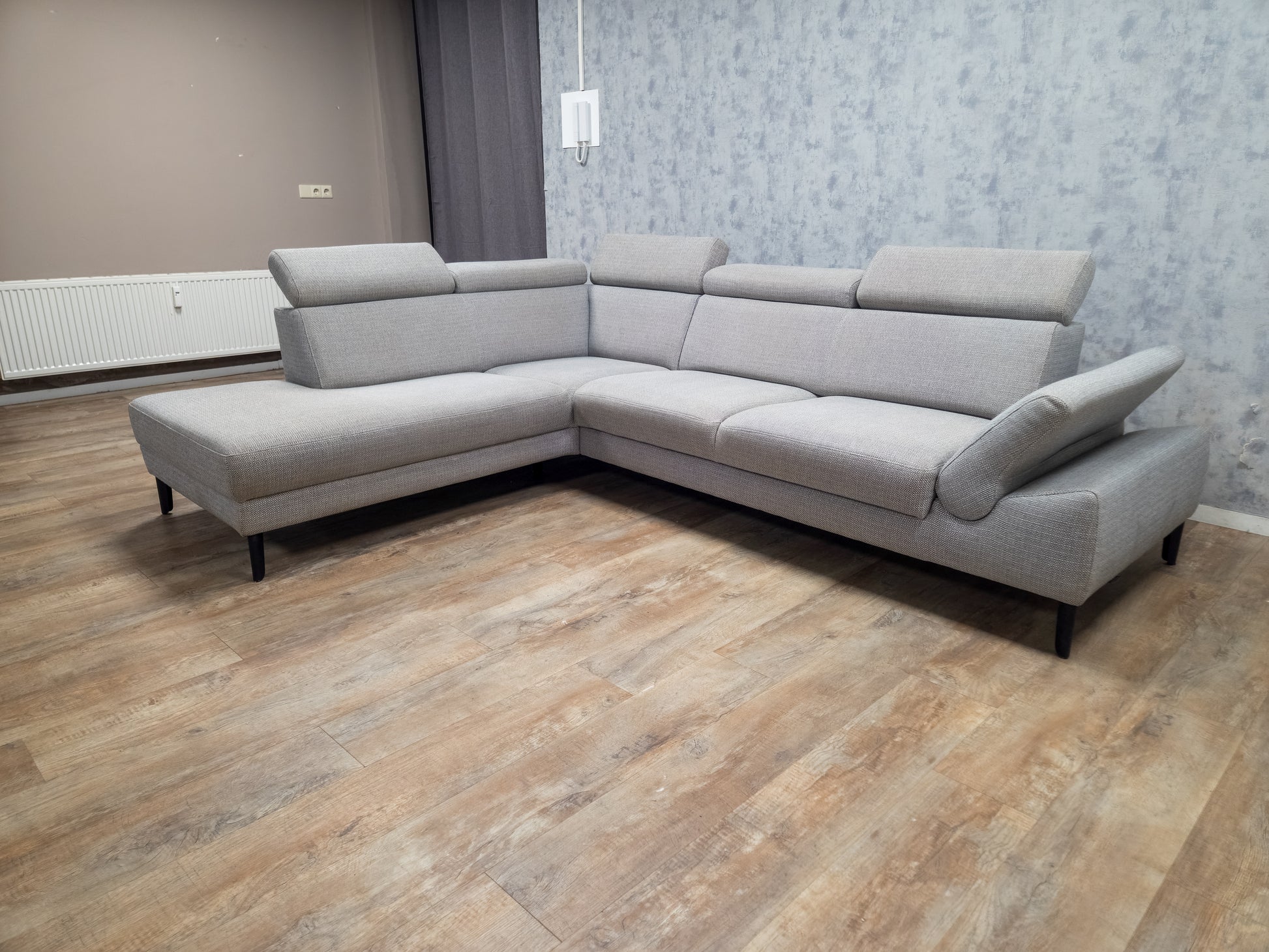 MONTEL Grijs Hoekbank - Met Hoofdsteunen Verstelbaar